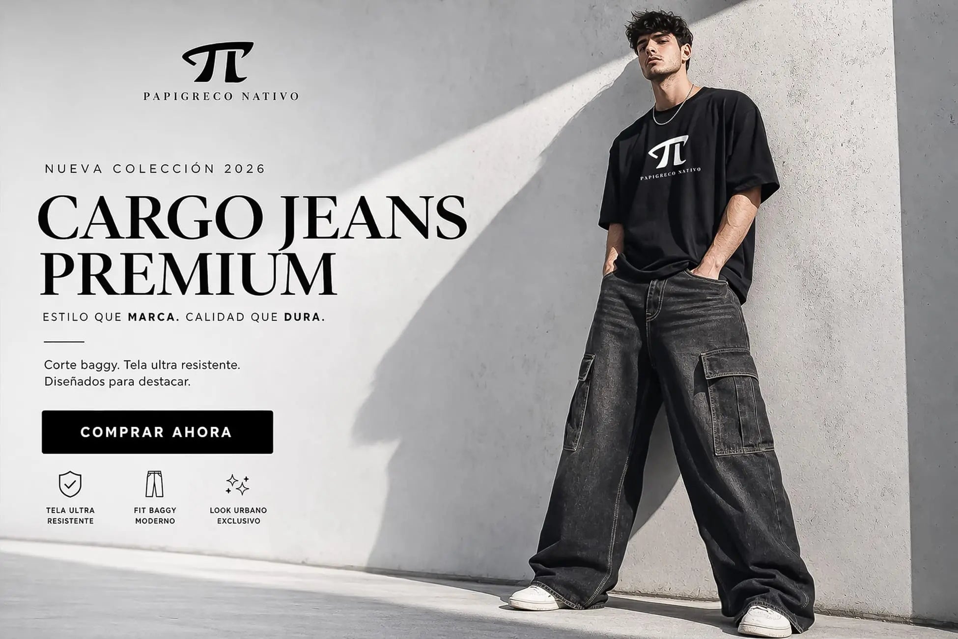 Cargo Baggy Jeans Negro / HOMBRE